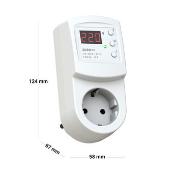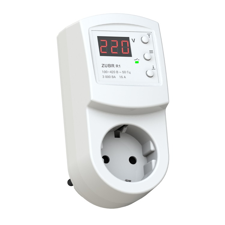 Реле напруги ZUBR R1 призначене для захисту обладнання від надмірних коливань напруги в мережі. Особливістю даної моделі є її встановлення у «євро» розетку. Реле вимикає навантаження при перевищенні допустимих меж напруги (максимальних і мінімальних).