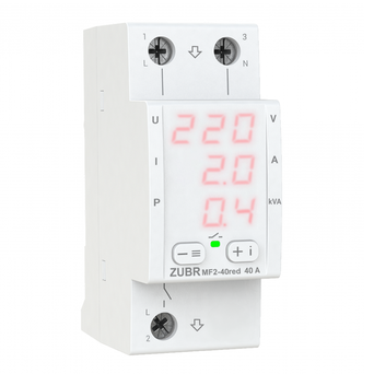 Многофункциональное реле ZUBR MF2 имеет компактный корпус шириной 2 модуля. Благодаря трем цифровым экранам, одновременно отображает значение напряжения, тока и мощности, что очень удобно при контроле всех параметров одновременно. В режиме ожидания доступна возможность настройки яркости экрана. У реле ZUBR MF2 широкий функционал, который объединил в себе: контроль напряжения, тока и мощности, а также возможность углубленных настроек.