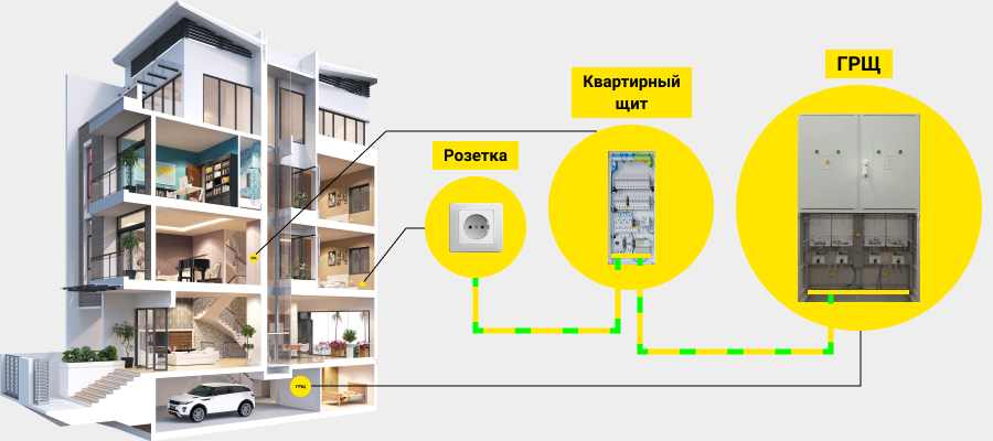 В домах построенных в советское время, где встречается подключение электричества по системе TN-C при помощи объединенного защитного и нулевого проводников, заземление в электрощитах дома отсутствует, а подача электричества в квартиру осуществляется по двухжильным кабелям.