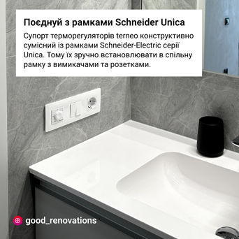 Терморегулятори terneo для установки в монтажну коробку сумісні з оригінальною рамкою terneo і рамками Schneider-Electric серии Unica Basic, Unica Colors, Unica Quadro, Unica Plus, Unica Top, Unica Class, Unica New.