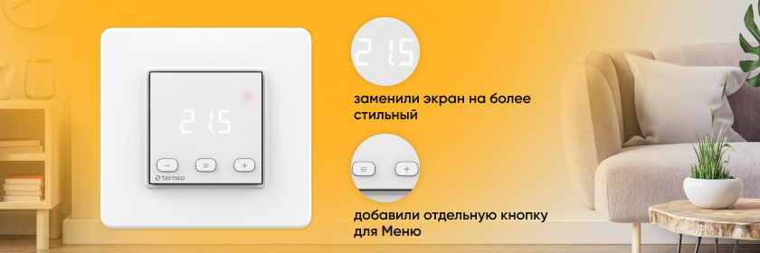 Управление устройством осуществляется с помощью трех кнопок. Цифровой экран отображает температуру и системные уведомления. Также он делает более удобной навигацию по меню настроек. Вы можете регулировать яркость экрана в режиме ожидания для уменьшения акцента на терморегулятор в помещении. Терморегулятор выполнен из наилучшего по противопожарным требованиям пластика — класс V0