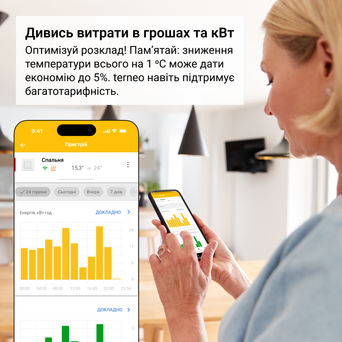Управляйте отоплением из любого места с помощью приложения terneo. Для работы со статистикой по группе терморегуляторов удобно использовать приложение для компьютера my.terneo.ua. Получите мгновенный доступ к температуре вашего дома, динамике нагрева и отчетам потребления энергии в кВт-часах и деньгах.