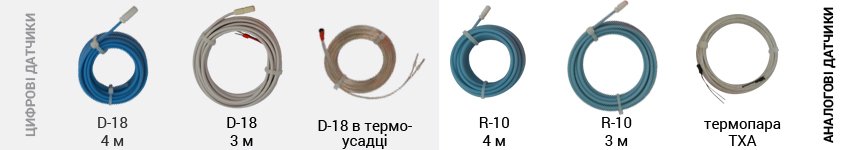 Кожний терморегулятор terneo комплектується тим видом датчика температури, який найкраще відповідає конкретній сфері застосування. Деякі терморегулятори можуть працювати тільки з аналоговими NTC-терморезисторами R10 (наприклад, terneo rtp), інші — тільки з цифровими термодатчиками D18 (terneo BeeRT), а окремі термостати сумісні з обома їх видами (наприклад, terneo pro).