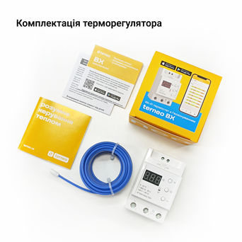 Завантажуйте безкоштовний додаток в Google Play або AppStore, запустіть його. Переведіть терморегулятор у режим «Точка доступу». У додатку натисніть «Додати терморегулятор». Виберіть створену терморегулятором мережу (наприклад, terneo sx_А68FDB), а потім введіть пароль від свого Wi-Fi. Готово!