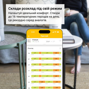 Нікого вдома? Жодних витрат енергії! Із Геозонуванням нагрівання залежить від вашого місця розташування і буде включено лише тоді, коли ви знаходитесь вдома або вже повертаєтеся додому. Детальніше про функцію та її налаштування
