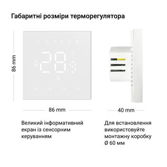 Терморегулятор підключається до Wi-Fi та керується через мобільний додаток Tuya або Smart Life.